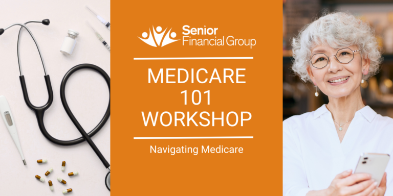 Questions about Medicare? Senior Financial Group invites you to attend a free educational workshop: Navigating Medicare. These monthly Medicare workshops are designed to provide simple answers to your complex questions. Our team of Medicare experts will help you understand all of your Medicare options and prepare you to make educated decisions regarding your coverage. Workshop topics include: