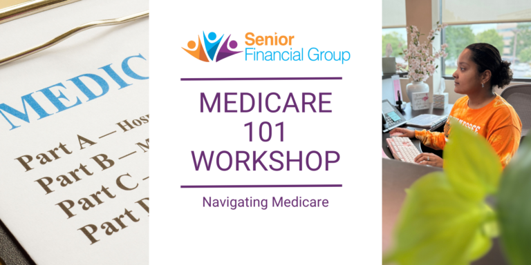 Questions about Medicare? Senior Financial Group invites you to attend a free educational workshop: Navigating Medicare. These monthly Medicare workshops are designed to provide simple answers to your complex questions. Our team of Medicare experts will help you understand all of your Medicare options and prepare you to make educated decisions regarding your coverage. Workshop topics include: